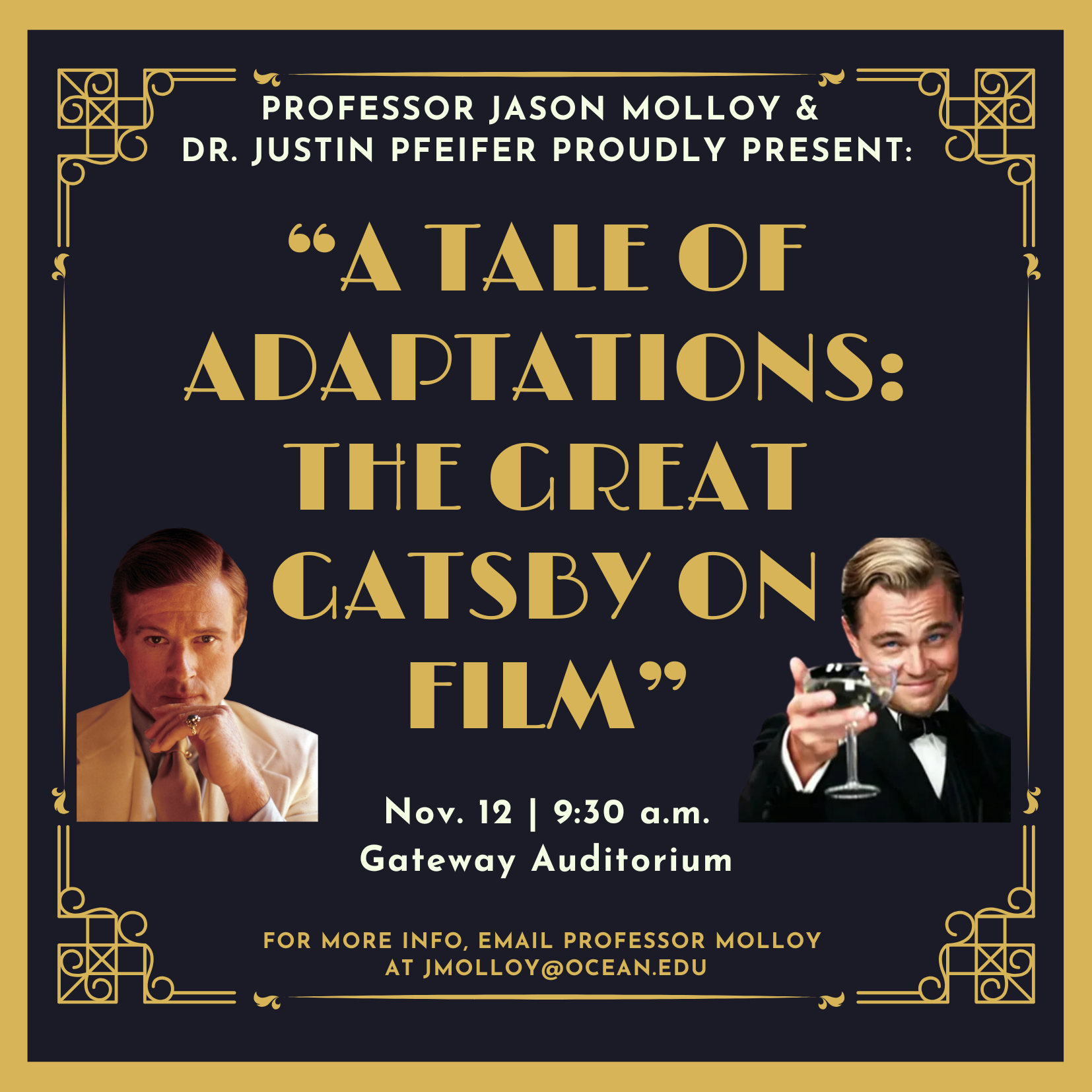 Professor Jason Molloy and Dr. Justin Pfeifer will be screening clips from two iconic film versions of The Great Gatsby. The program will include commentary by Professors Molloy and Pfeifer, and will allow time for Q&A from the audience.