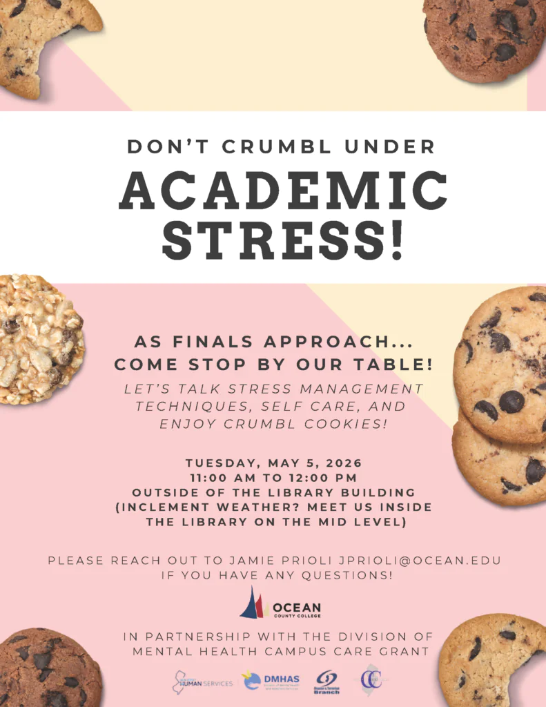 Reminder: The Counseling Center provides free, confidential mental health counseling to currently enrolled OCC and Kean-Ocean students. We offer in-person and virtual counseling services from 9am to 5pm, Monday thru Friday. Contact Information Here